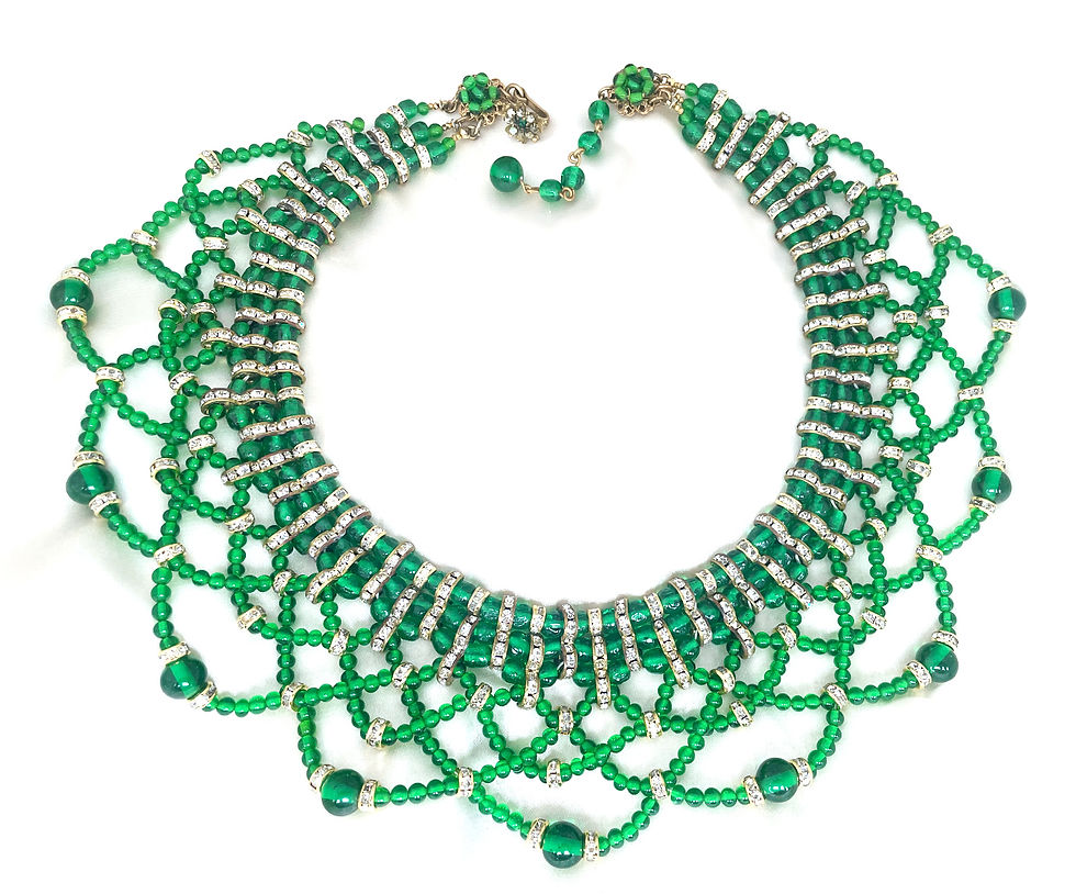 1940s Vintage MIRIAM HASKELL Emerald Green Colar Necklace & Bracelet Set