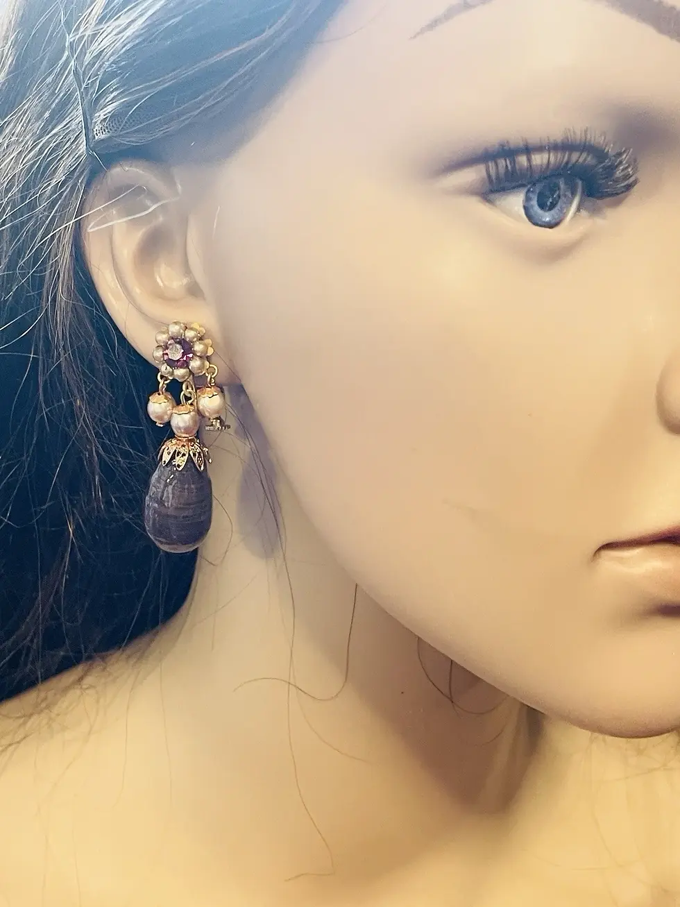 Vintage Miriam Haskell Baroque Art Glass Clip On Earrings